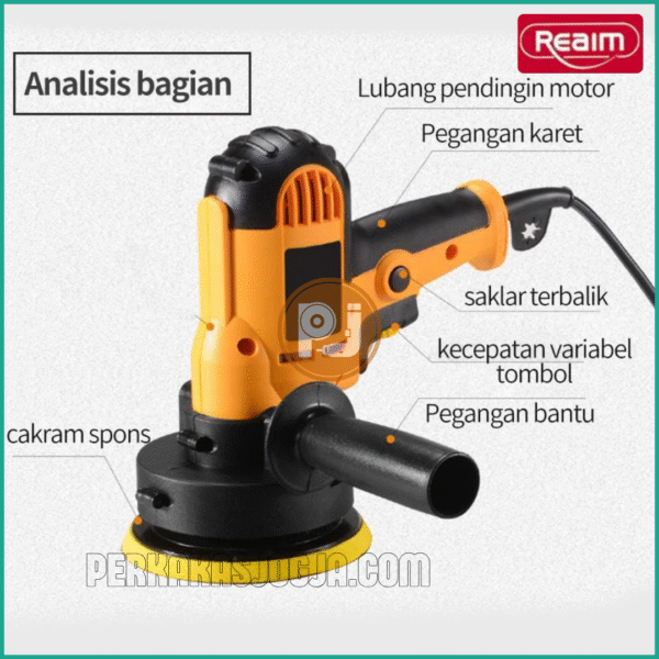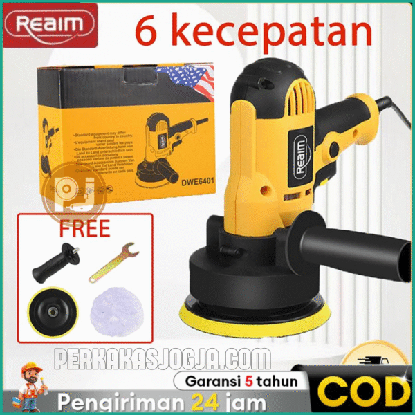Mesin Poles Multifungsi 2 in 1 REAIM 400-900W sudah teruji dengan baik dan dibungkus aman dengan bubble wrap + stiker mudah pecah